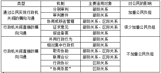 概括地说,调整行政机关横向关系的行为法机制是通过三种模式加以创设的。