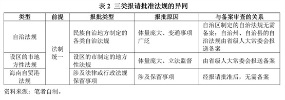 从实践层面来看,全国人大常委会法工委理应区分海南自贸港法规、浦东新区法规、经济特区法规和地方性法规等不同的立法形态,在备案审查实践和备审年报中亦应单独提及海南自贸港法规和浦东新区法规的备案审查信息。