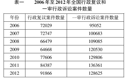 如前所述,多数学者都认为,当前行政复议案件数量少的根源在于行政复议机构是政府内设机构,机构本身缺乏独立性。比如,有学者认为,“人们不愿首选行政复议的根源在于对行政复议公正性的怀疑,认为行政机关官官相护的嫌疑”,而“到人民法院独立设置并依法行使审判权,不受行政机关的干涉,到法院提起行政诉讼,由职业法官组成合议庭进行审理,对合议庭组成成员,当事人有权要求回避;合议庭通过公开开庭听取双方辩论。这一过程可以使人们相信行政审判是公正的”。(16)依照该观点,机构独立的人民法院受理的行政纠纷案件应当远比容易被怀疑“官官相护”的行政复议机构受理行政纠纷案件多出许多才是。但事实却远非如此。从最近几年人民法院受理的一审行政诉讼案件数量和行政复议案件数量对比可以看出,法院受理的行政案件数量并没有因为其机构独立而有十分明显的优势。(见表一)