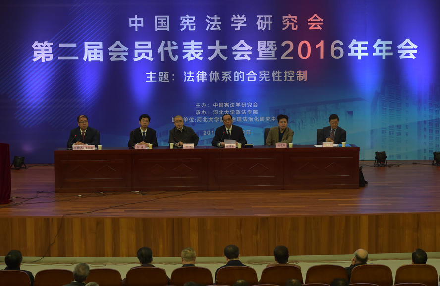 2016年10月22日至23日,由中国宪法学研究会主办,河北大学政法学院承办,河北大学国家治理法治化研究中心协办的中国宪法学研究会第二届会员代表大会暨2016年年会在河北大学召开。来自全国各高校、科研院所和实践部门的近三百名专家参加了会议。