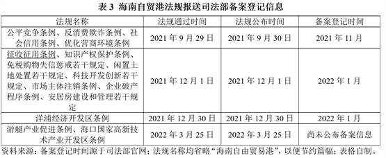 首先,及时公布海南自贸港法规的备审信息具有法理正当性和实践必要性。海南自贸港法规在备案审查工作中的“隐名”处理,虽然在实质上也具有着维护国家法制统一、提高地方立法质量的作用,但有关自贸港法规备案审查实践的透明度缺失,可能会使公众质疑海南自贸港法规的备案审查工作是否实际运行。因此,适时公开自贸港法规的备案审查信息,既是法律层面的要求,也是现实层面的需要。此外,若从备审年报的角度来看,海南自贸港法规具有自身独特的制度定位和变通权限,并不适宜在备案审查工作报告中“混入”经济特区法规或是地方性法规的类别之中。